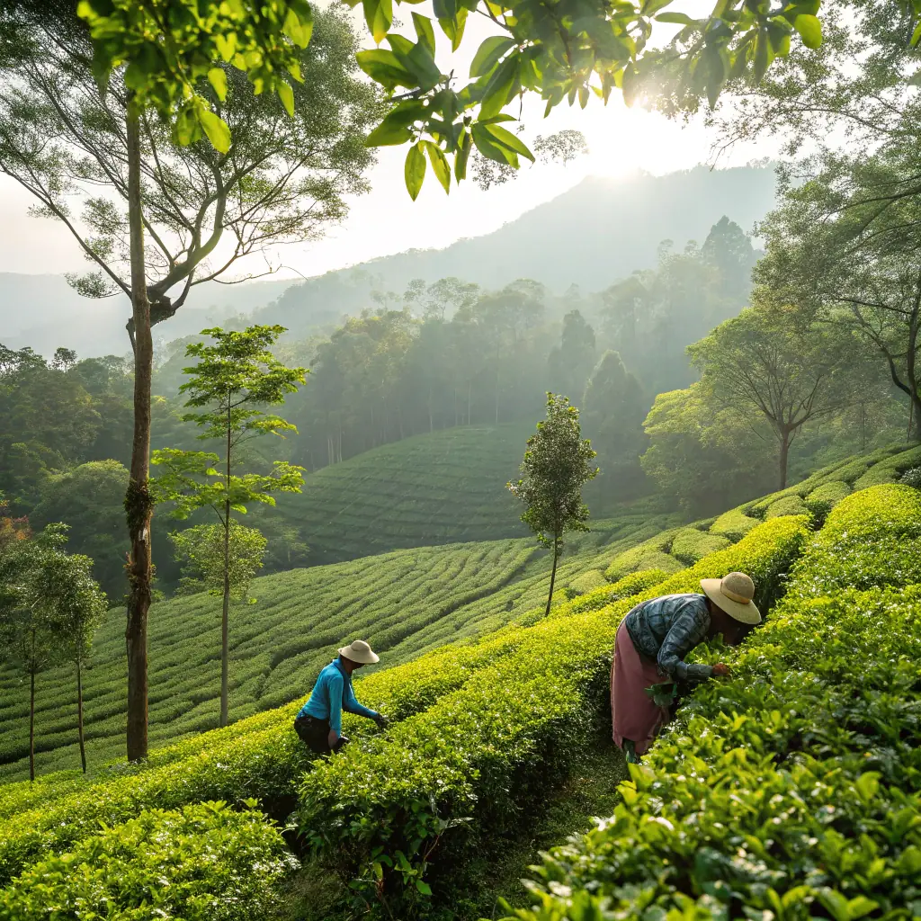 Ich erkunde die grünen Teeplantagen und atemberaubenden Panoramen von Nuwara Eliya.